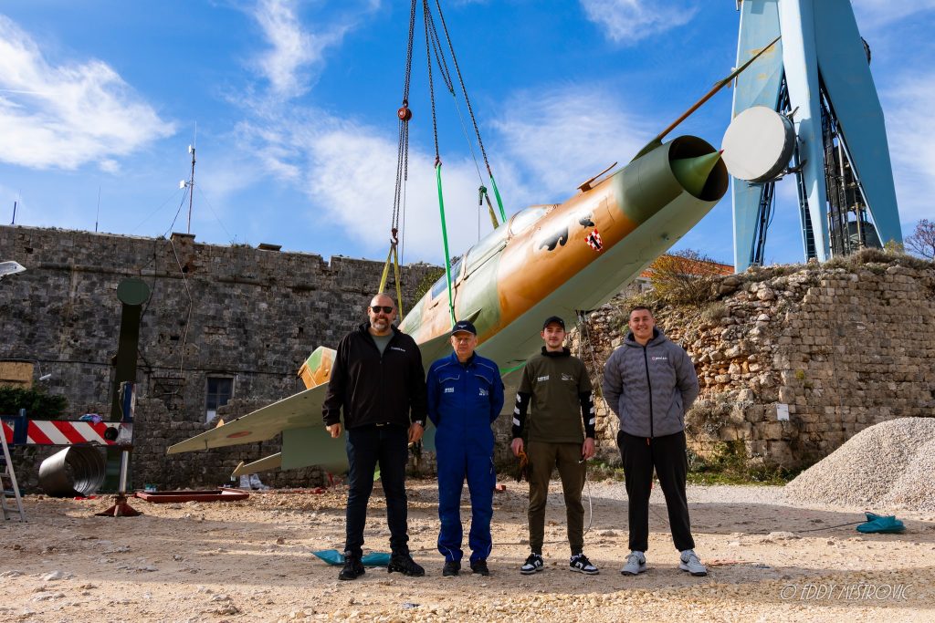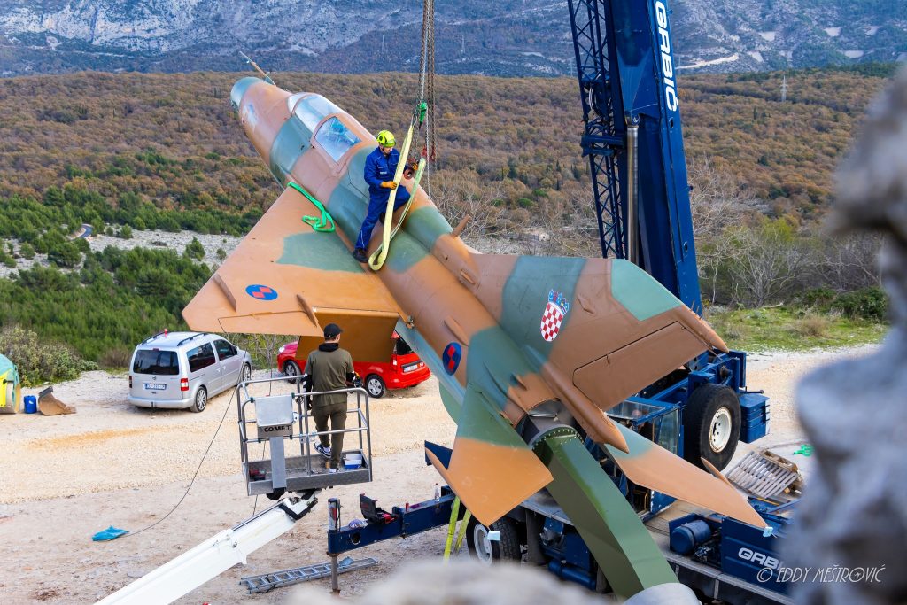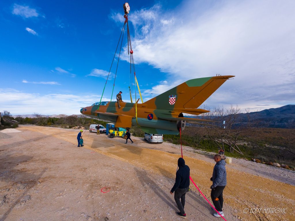 Član UBD Željko Krmpotić postavljao restaurirani hrvatski MIG 21 na plato Srđa