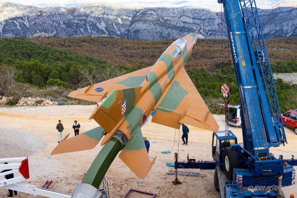 Nakon što je obavljena restauracije u Bjelovaru MiG-21 je jučer postavljen na simbol obrane Grada Srđ ispred prvog Muzeja Domovinskog rata u Tvrđavi Imperijal.