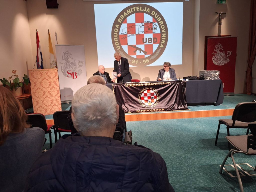 Godišnja Izvještajno-izborna skupština Udruge branitelja Dubrovnika održana je u Subotu 21. veljače 2026. godine u dvorani Ivana Pavla II. Nazočne članove ispred Dubrovačko neretvanske županije pozdravila je uz pohvale gospođa Nina Skurić, tople riječi i o iskazanoj dosadašnjoj i budućoj suradnji prije svega na korist i za bolji status branitelja uputio je nazočnima Nikša Sentić predsjednik Hrvatskog časničkog zbora naše Županije, a skupu se obratio i Frano Cebalo predsjednik našeg prvog Ogranka UBD osnovanog u gradu Korčuli gdje je potrebno stalno dokazivanje da je Hrvatska nastala u Domovinskom obrambenom ratu, a ne onomu za Jugoslaviju.