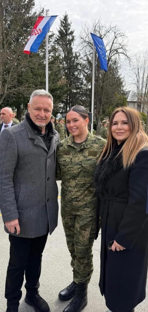 Na fotografijama sa prisege u vojarni „123. brigade HV“ u Požegi je naš branitelj i popularni hrvatski pjevač Marko Perković i njegova kći Diva Marija Perković.